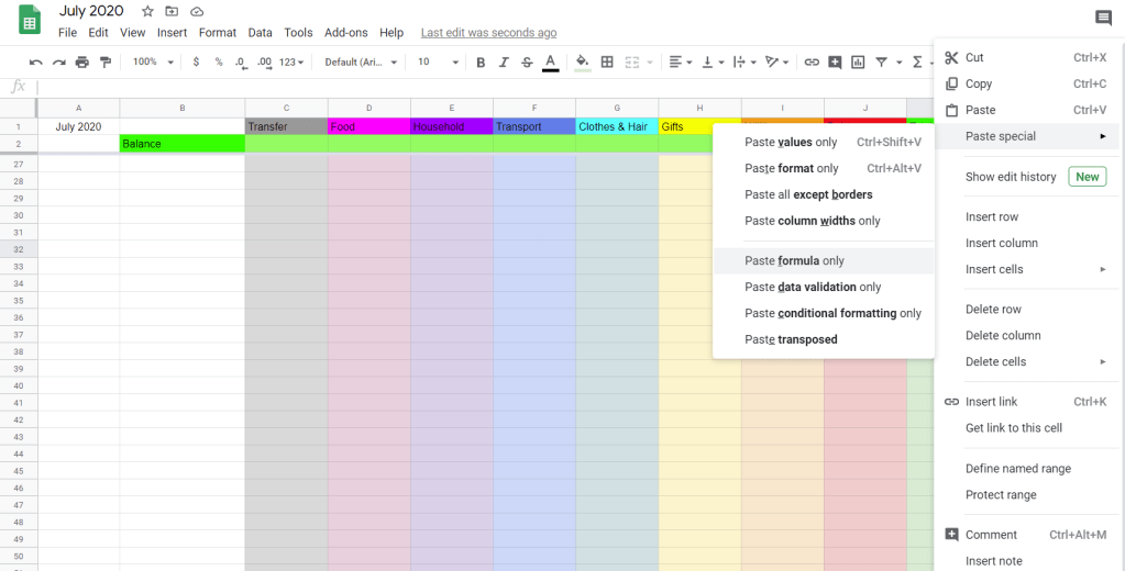 Using Google sheets for budgeting is extremely helpful for keeping you conscious of how you are spending your money and where you are spending it. There are apps you can install that will automatically do this work for you, however, I find that manually entering in my costs every week keeps me more accountable of where my money is going.
