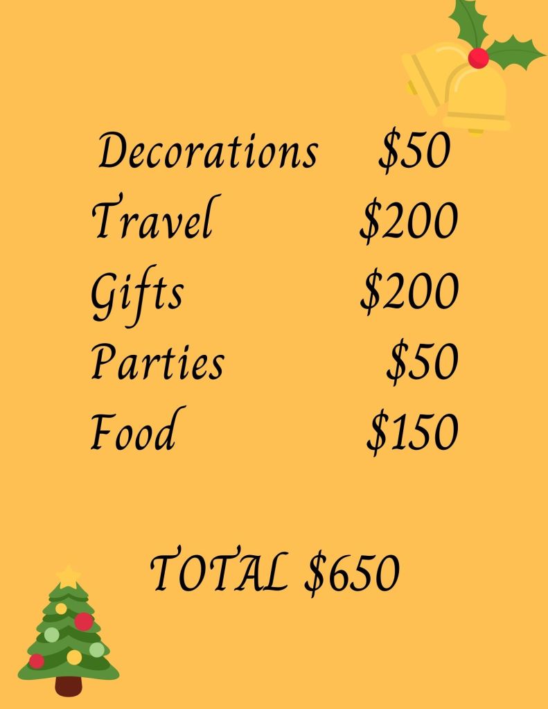 Brainstorm all the different things you will need to spend for Christmas